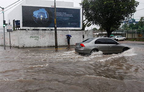 Am Tag des Spieles ersäuft Recife im Tropenregen. Mit dem Leihwagen ist kein Vorwärtskommen, Google meldet Staus über Staus. Als wir am Stadtrand ankommen, findet mein schlauer René jedoch sofort eine Metro Station. Schwupps haben wir das Auto abgestellt, und sind in den Zug gesprungen. Mit einmal umsteigen geht es zum Stadion. Aus dem Zugfenster sehen wir die mega Staus und die total überfluteten Straßen. Die letzten 4 Kilometer zum Stadion stehen Busse bereit, das ist super organisiert, und es gibt keine Wartezeiten. Dann nochmal 30 Minuten laufen, und schon sind wir nach nur 3 Stunden am Stadion angekommen. Es gießt immer noch. An der Sicherheitskontrolle wird mir mein Schirm abgenommen. Danke dafür. Ich mag es klatsch Nass zu werden.