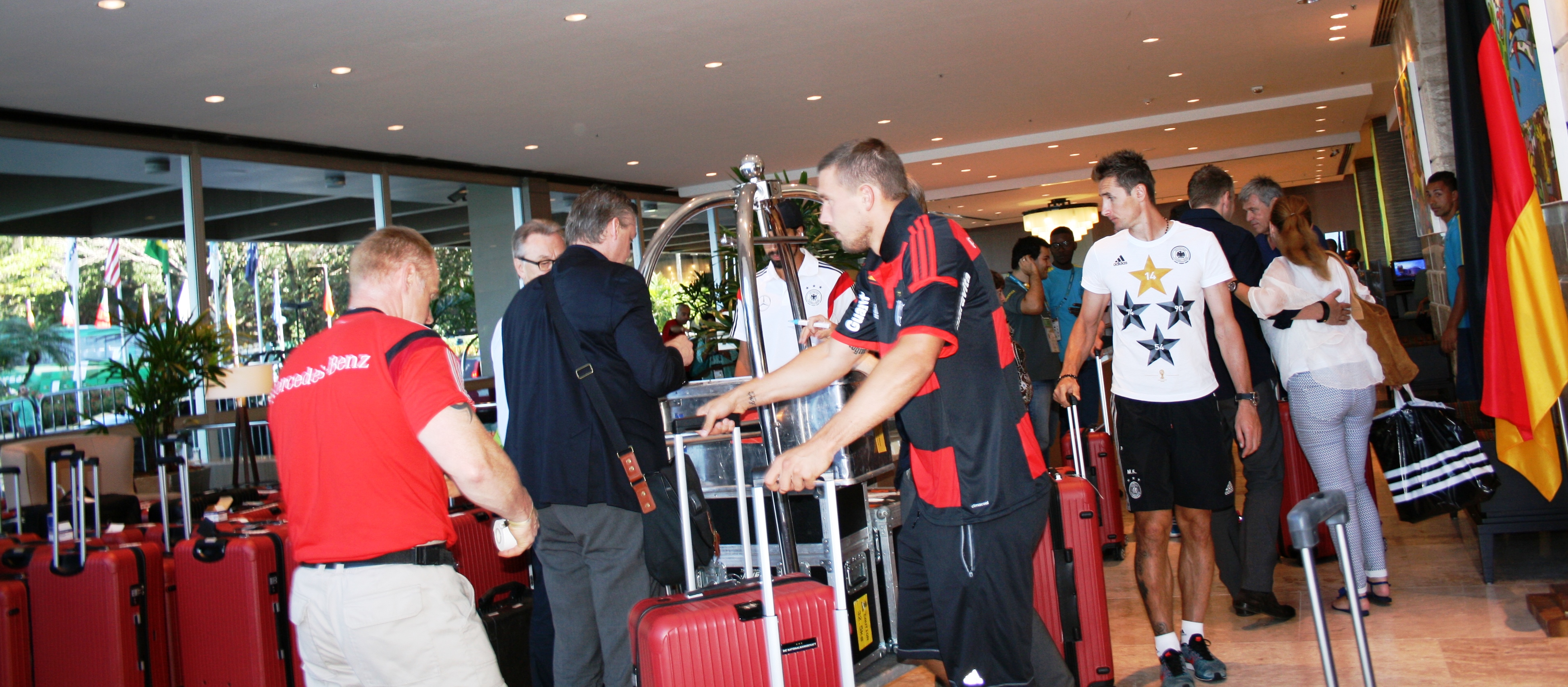 Am Montag vormittag treffen wir die Nationalmannschaft im Sheraton Hotel. Löw gibt Interviews, Poldi ist da und Khedira. Sami steht 2 Meter neben mir und es ist mir zu peinlich, nach einem Foto zu fragen. Im Nachhinein ärgere ich mich total darüber!