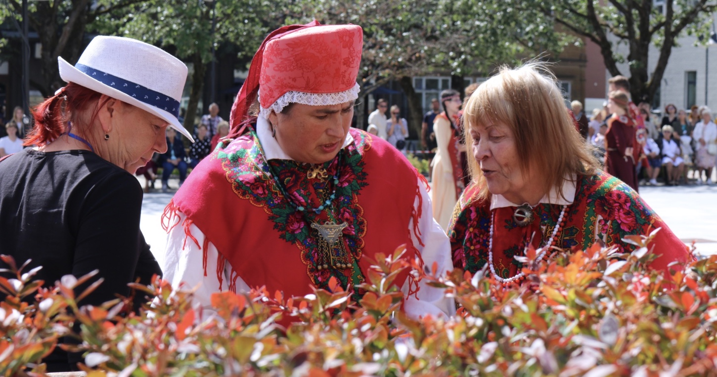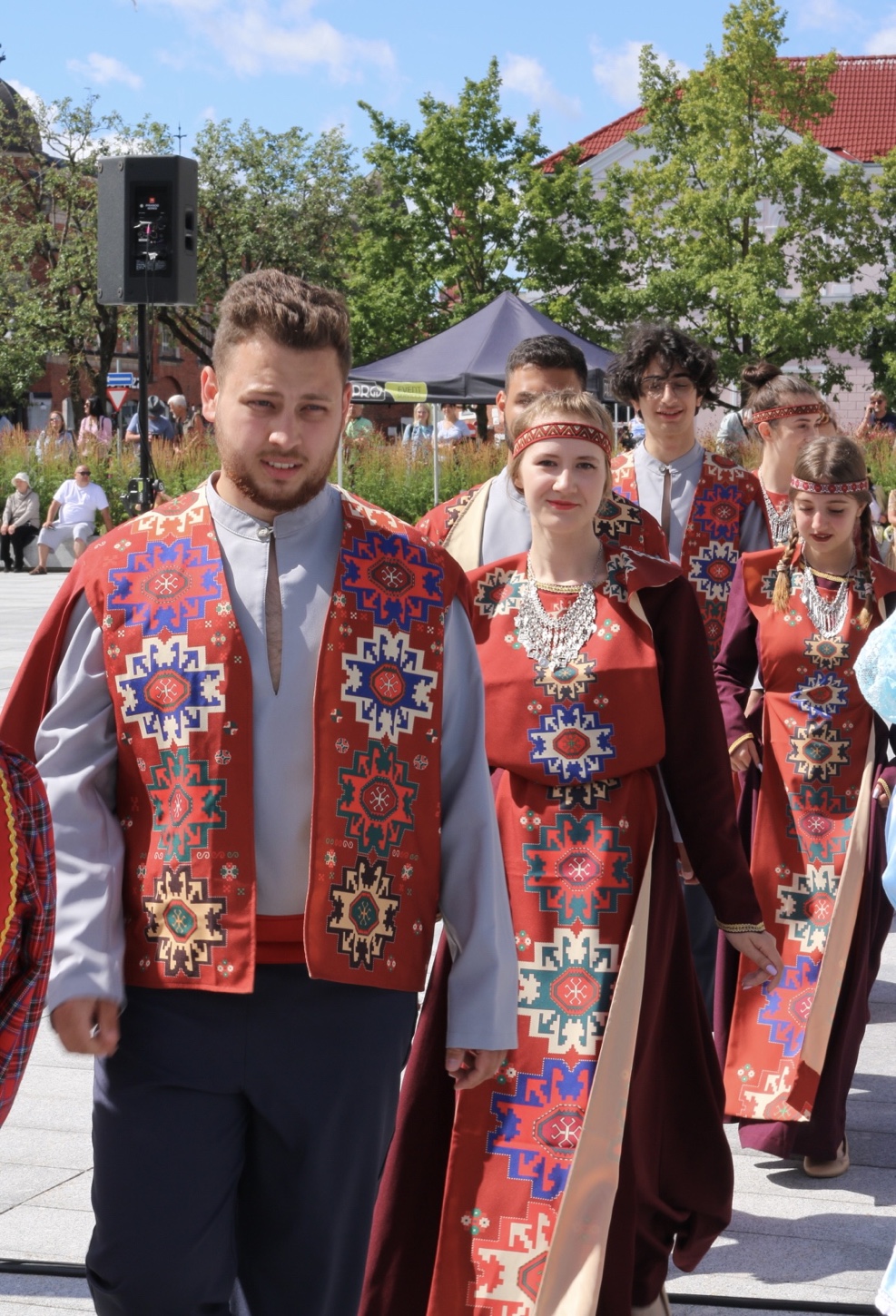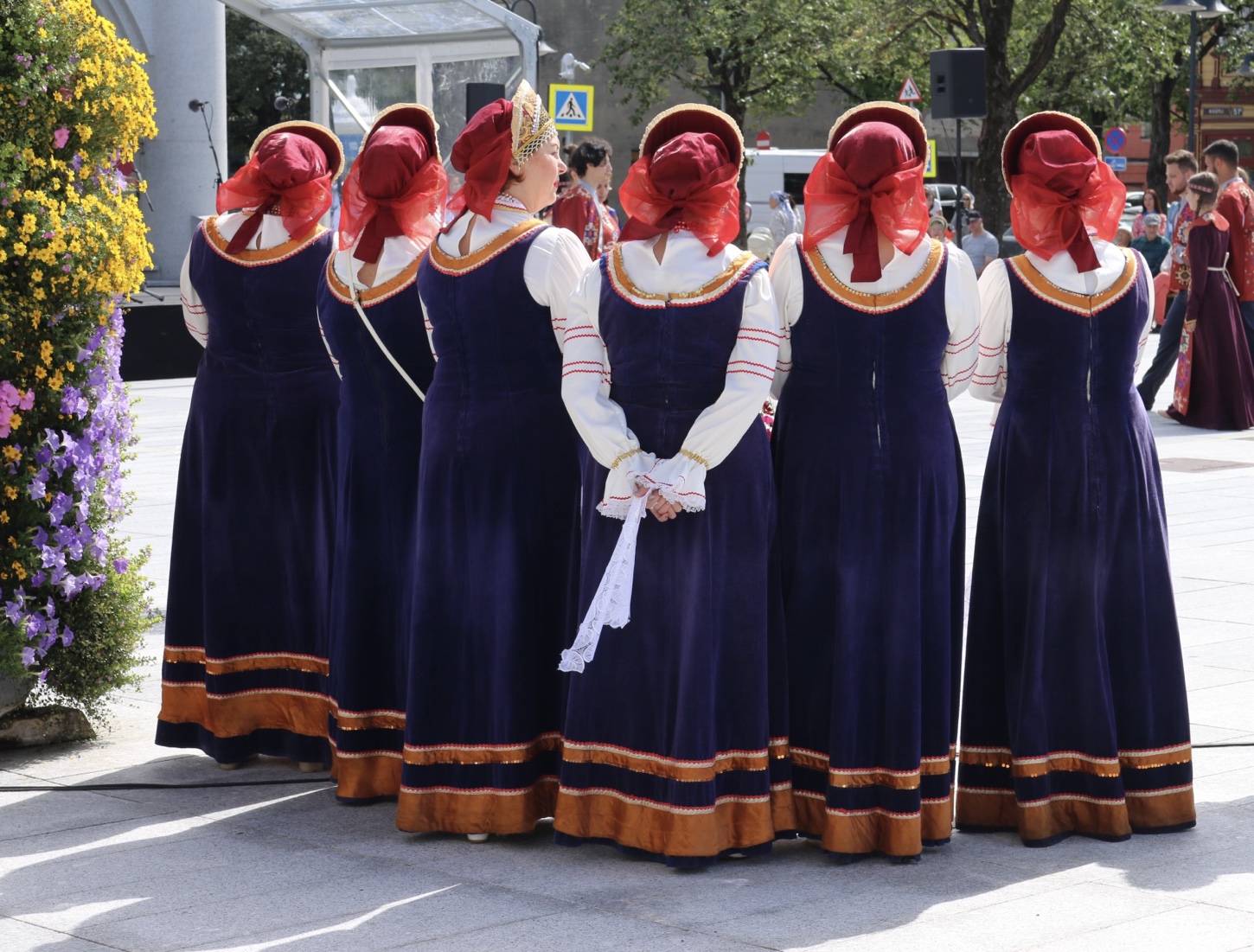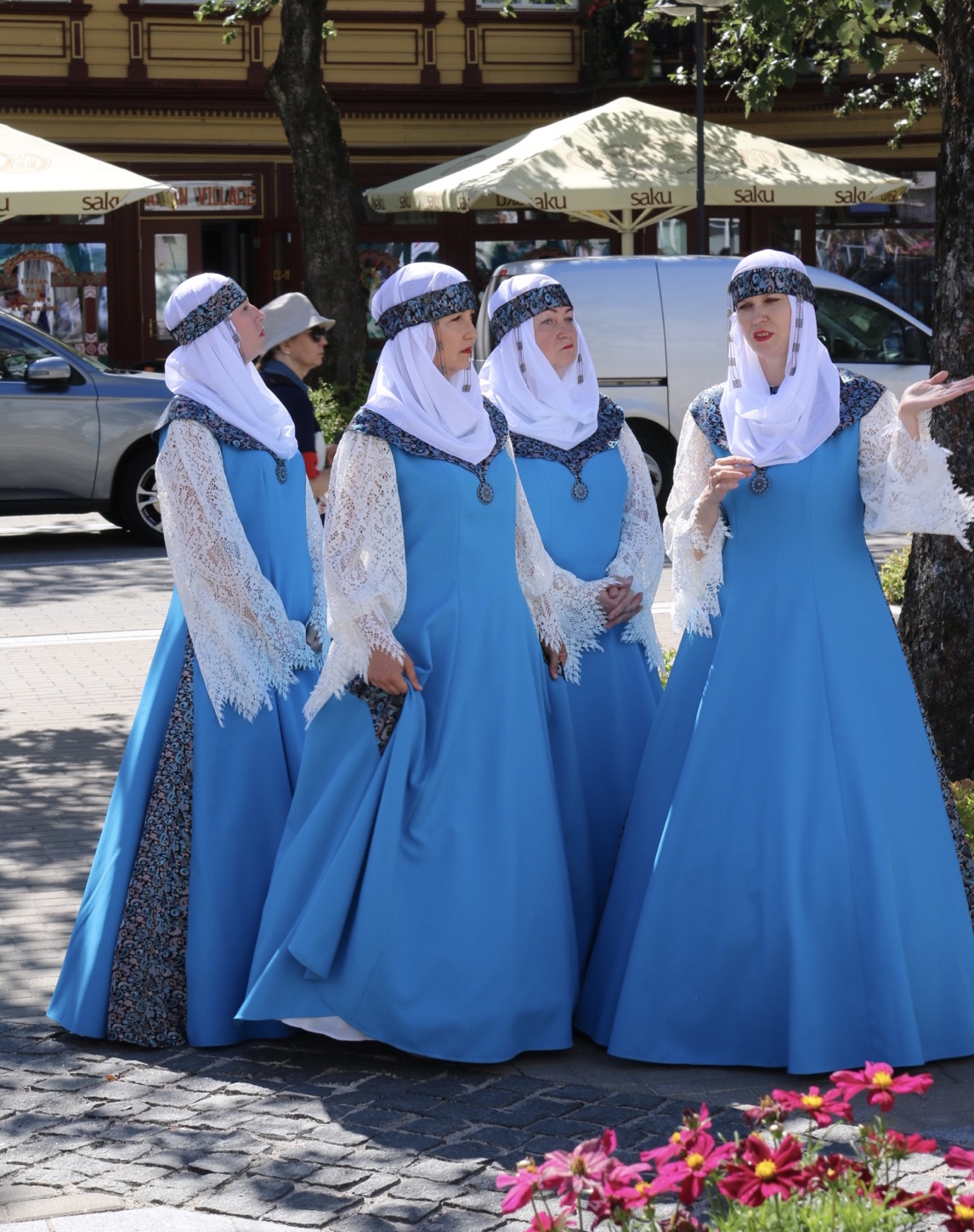 Also “Street food festival” in Pärnu war das Ziel. Ein freier Stellplatz für die Nacht ist schnell am Hafen gefunden, wir schultern unsere Taschen und los geht’s. Es ist sowieso Lunch Zeit. Auf dem kurzen Fußweg dorthin passieren wir zufällig eine estnische Volkstanz-Vorstellung! Alt und jung. Mann und Frau. Unterschiedliche Trachten, Farben, Hüte. Ist das hübsch anzusehen. Manche Tracht sieht eher religiös aus, andere sind einfach farbenfroh, bunt und freundlich (Frage am Rande: warum ist Kirche eigentlich immer schwarz?).