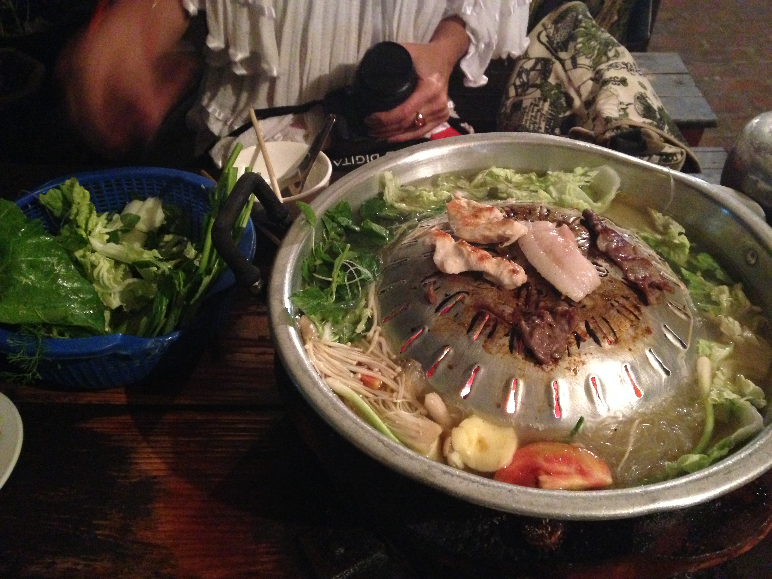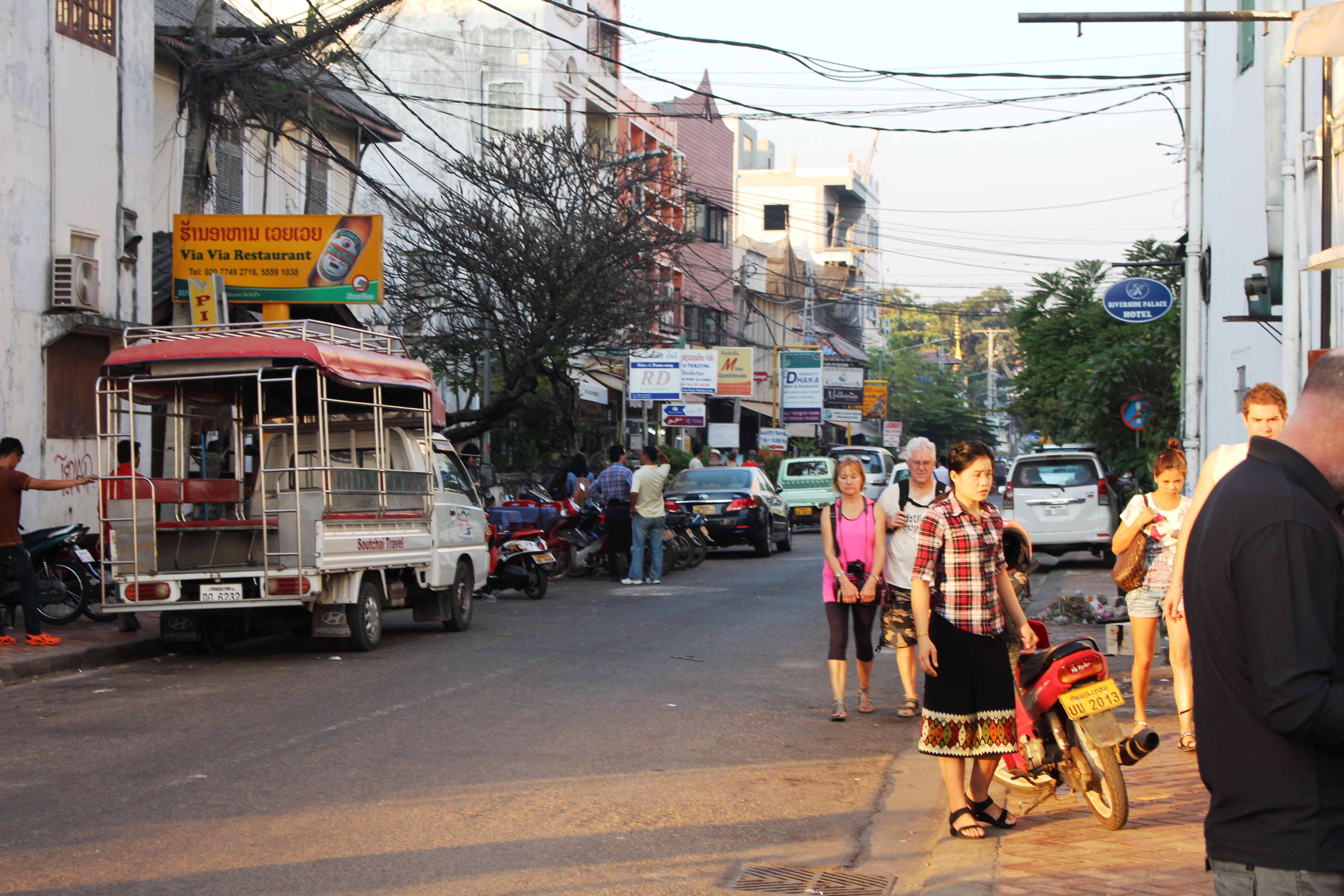 Nach einer heißen Dusche erkunden wir den Ort. Und sind begeistert! Weltkulturerbe, charmante weiße einstöckige Häuser. Asphaltierte und saubere Straßen ohne Schlaglöcher. Die ganze historische Innenstadt wirkt sehr ’sauber‘, beinahe ungewöhnlich rein für Süd-Ost Asien. Viele Straßenstände, ein toller Nachtmarkt. Keine Bausünden und keine schrill blinkenden Reklametafeln. Kein Disko-Musik Gewummer. Die Touristen-Gruppen sind Backpacker, oder Ältere (Studien?) Reisende. Viele Australier und Franzosen. Laotisches BBQ ist – wie bereits in Kambodscha – unser Highlight!
