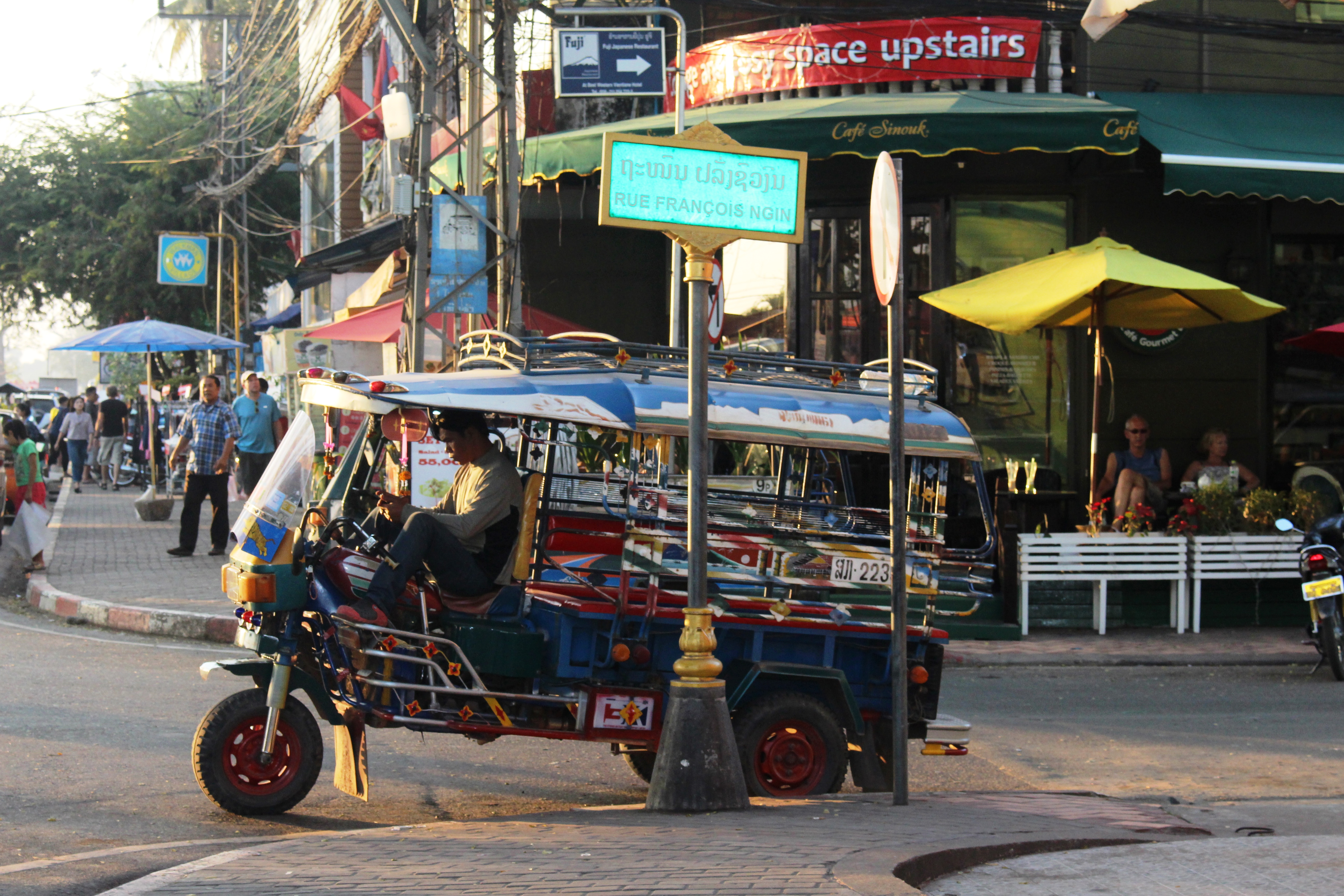 Die laotische Bevölkerung hat uns auch nicht mitgerissen. Rene sagt, die sind alle doof. Ich sage: die sind nicht trainiert. Rene sagt: „wenn der gleiche Hotelmitarbeiter beim Frühstück 5x nach der Zimmernummer fragt, ist er doof.“ Wohlgemerkt, das Hotel hatte lediglich 20 Zimmer, von denen zehn belegt waren, und beim späten Frühstück waren nur zwei Tische besetzt. Ok, vielleicht hat Rene recht. Beim unserem üblichen „Straßen-Dinner-auf-Plastik Stühlen“ springt auch kein Sympathie-Funke Über. Eher das Gefühl „mir doch egal, wo ihr esst“.