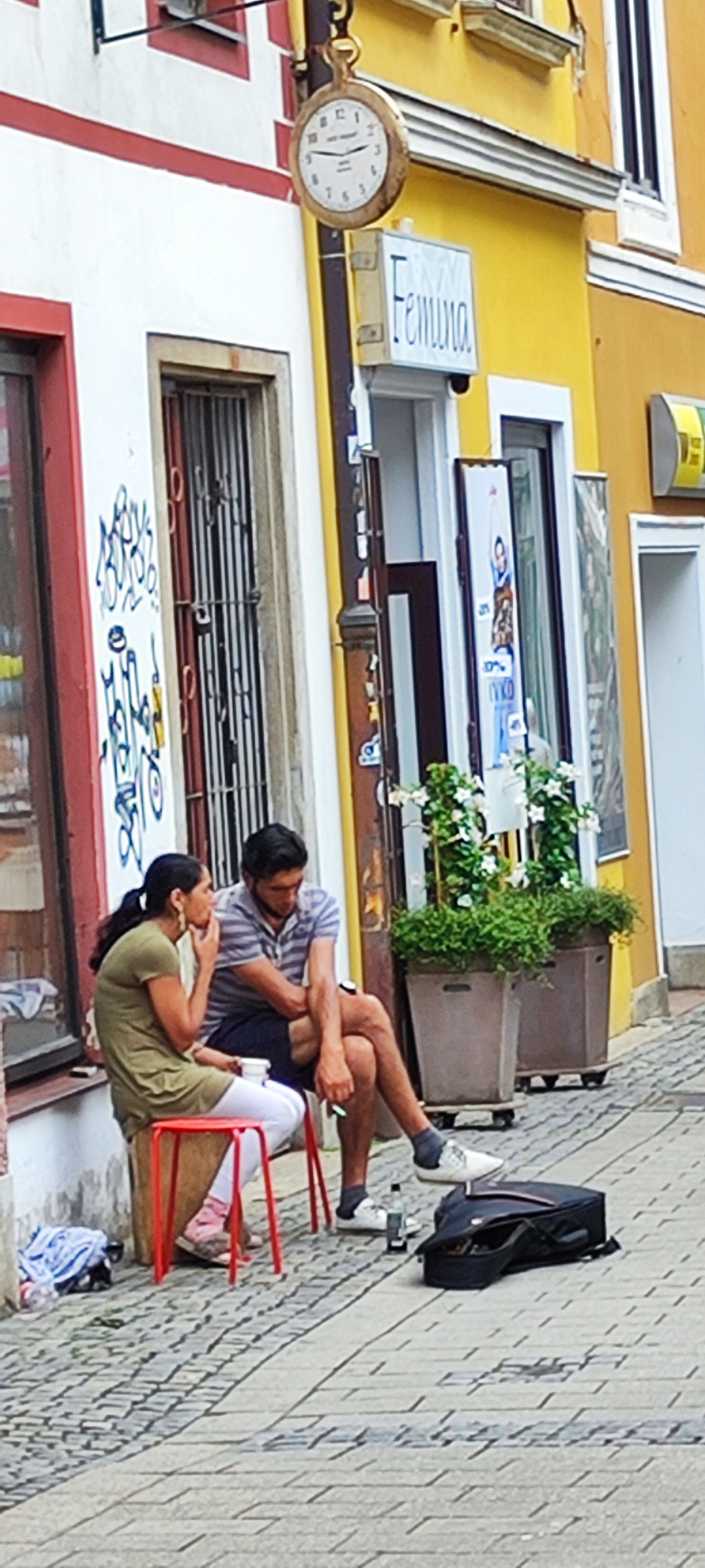 Das Wohnmobil ist schnell abgestellt, und wir laufen eine halbe Stunde an der idyllischen Drau / Drava entlang in den Ort. Auch wenn es nicht sonnig,ist, ist es doch arg schwül Mitte Juli. Wir schwitzen. Das Zentrum überrascht uns. Es wird viel gebaut, am Flussufer entsteht eine Promenade, die Fußgängerzone ist fertig und die Ortsmitte ist autofrei. Aber die Gebäude! Die Gebäude sind eine Mischung aus Tippi-Toppi restauriert, und total verfallen (seit dem Untergang Jugoslawiens brach- liegend?). Seite an Seite. Mauer an Mauer. Zerfall an Zukunft.