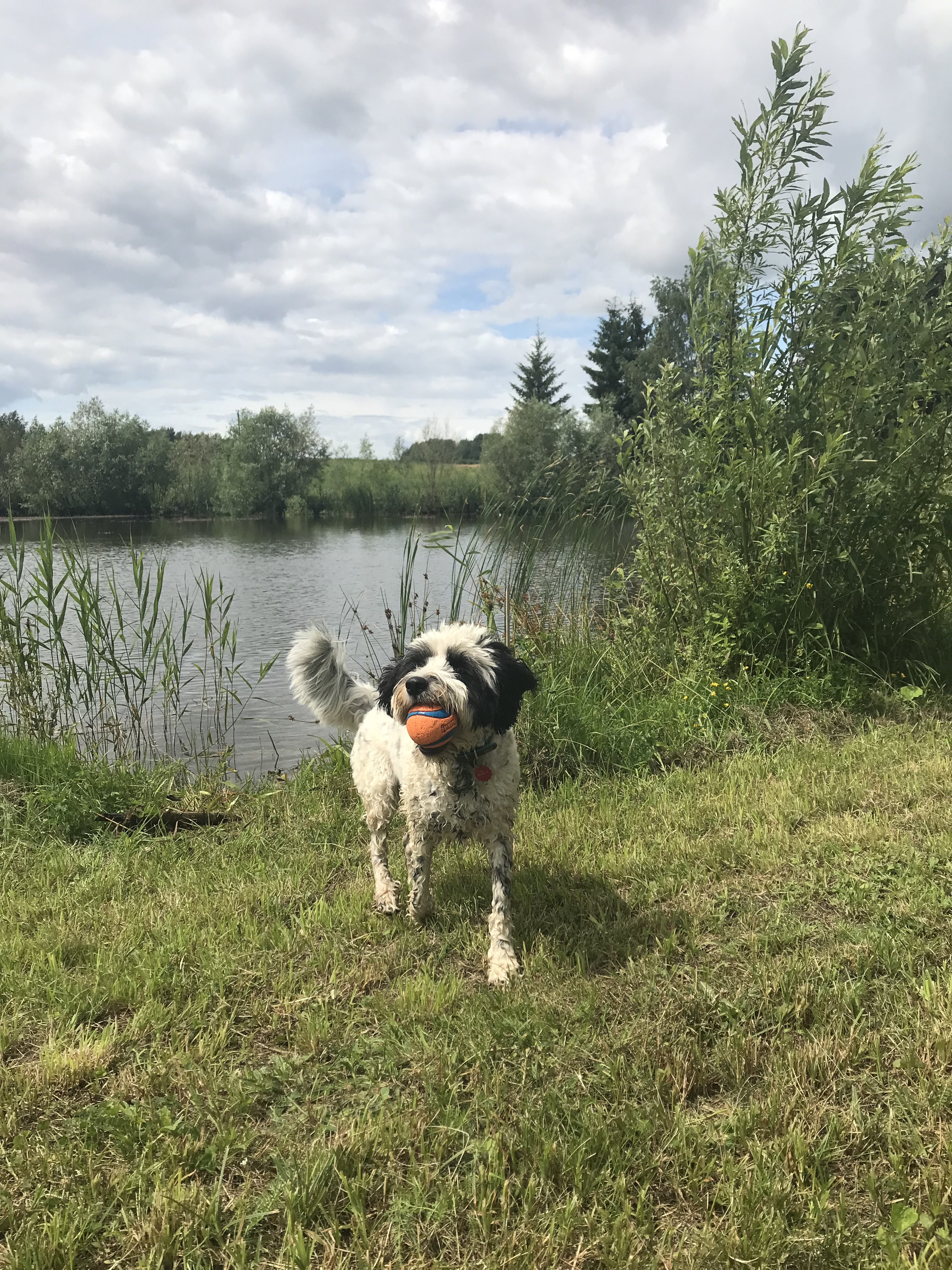 Es ist morgens vor 9 Uhr auf einem weitläufigen Wald Campingplatz an der masurischen Seenplatte. Die Gegend und die Landschaft könnte schöner nicht sein. Der Himmel scheint unendlich, weiße Wolken vor dem strahlenden Blau über dem dunklen See. Bereits um 6.30 Uhr bin ich aufgestanden, und im Schlafanzug mit Rocky und meiner Kamera an den See gegangen. Herrlich!
