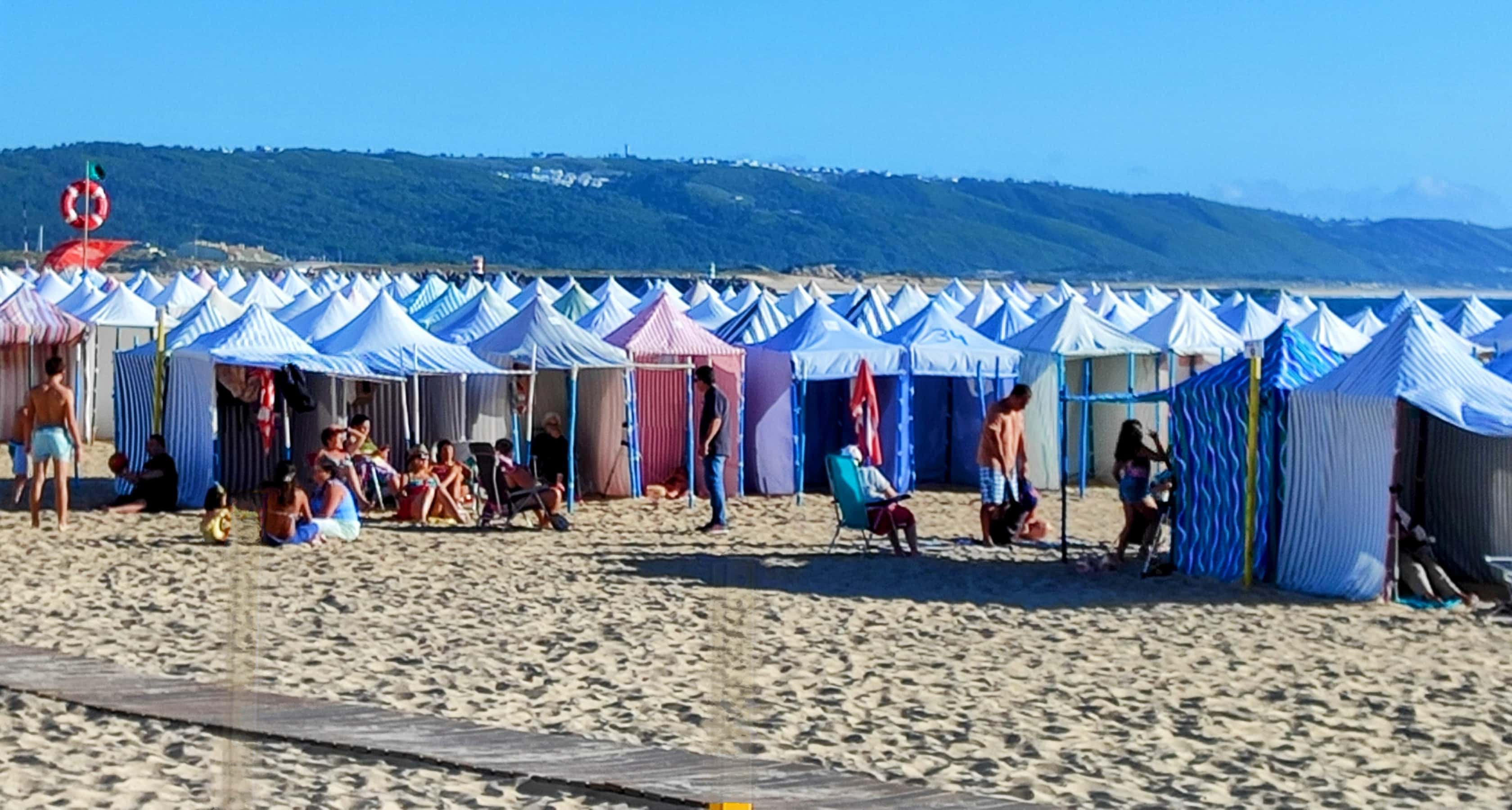 Bei unserem Besuch des beschaulichen Küstenortes an der portugiesischen Westküste im Juli ist das Meer flach wie ein Pfannkuchen.