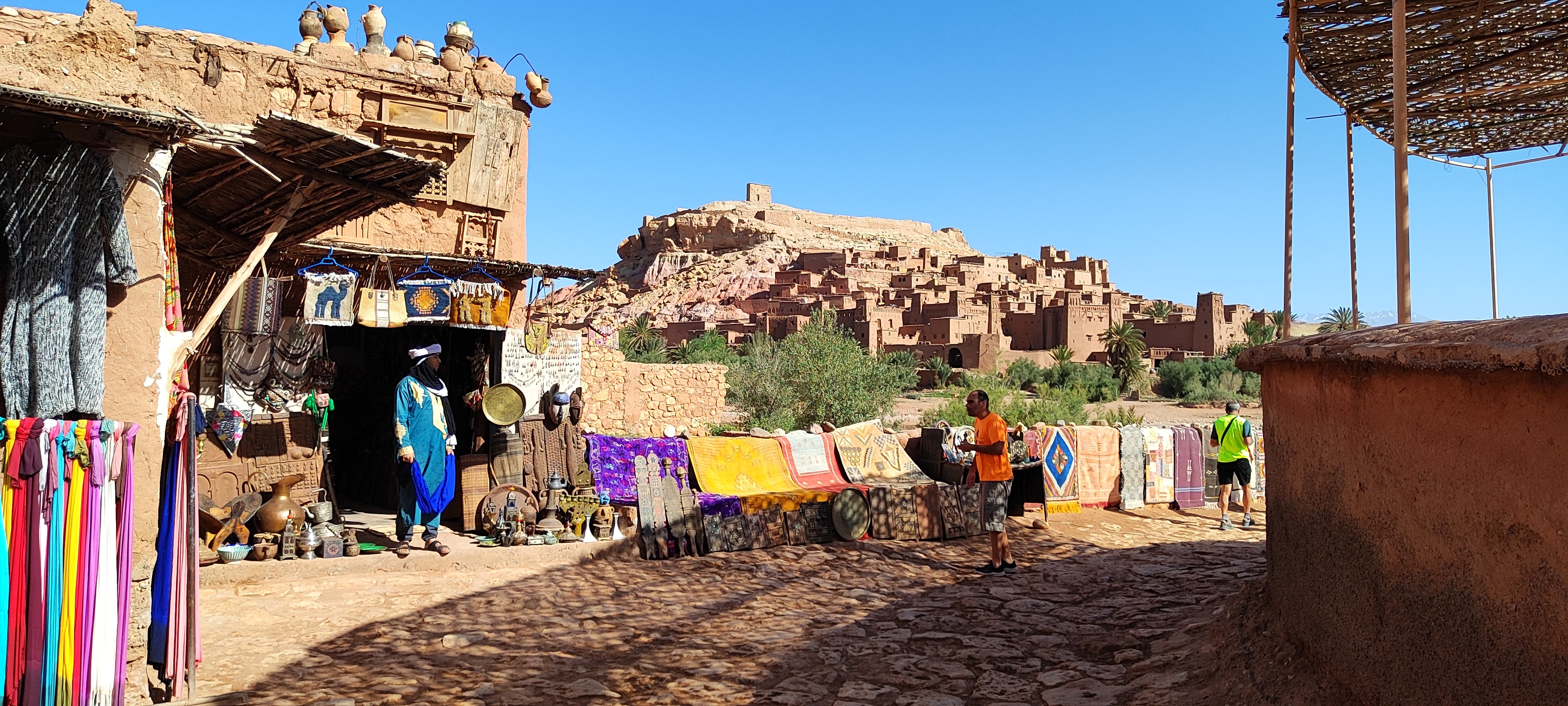 Gelegen auf 1120 Metern, zwischen den Gebirgsketten des Hohen Atlas und des Antiatlas, ist Ouarzazate Drehkreuz zwischen Nord- und Süd, Ost und West Marokkos. Sehenswürdigkeiten gibt es zwei: die Kasbah und die größten Filmstudios der Welt. Wir planen 2 Tage ein, und starten gleich am Morgen Richtung Kasbah.