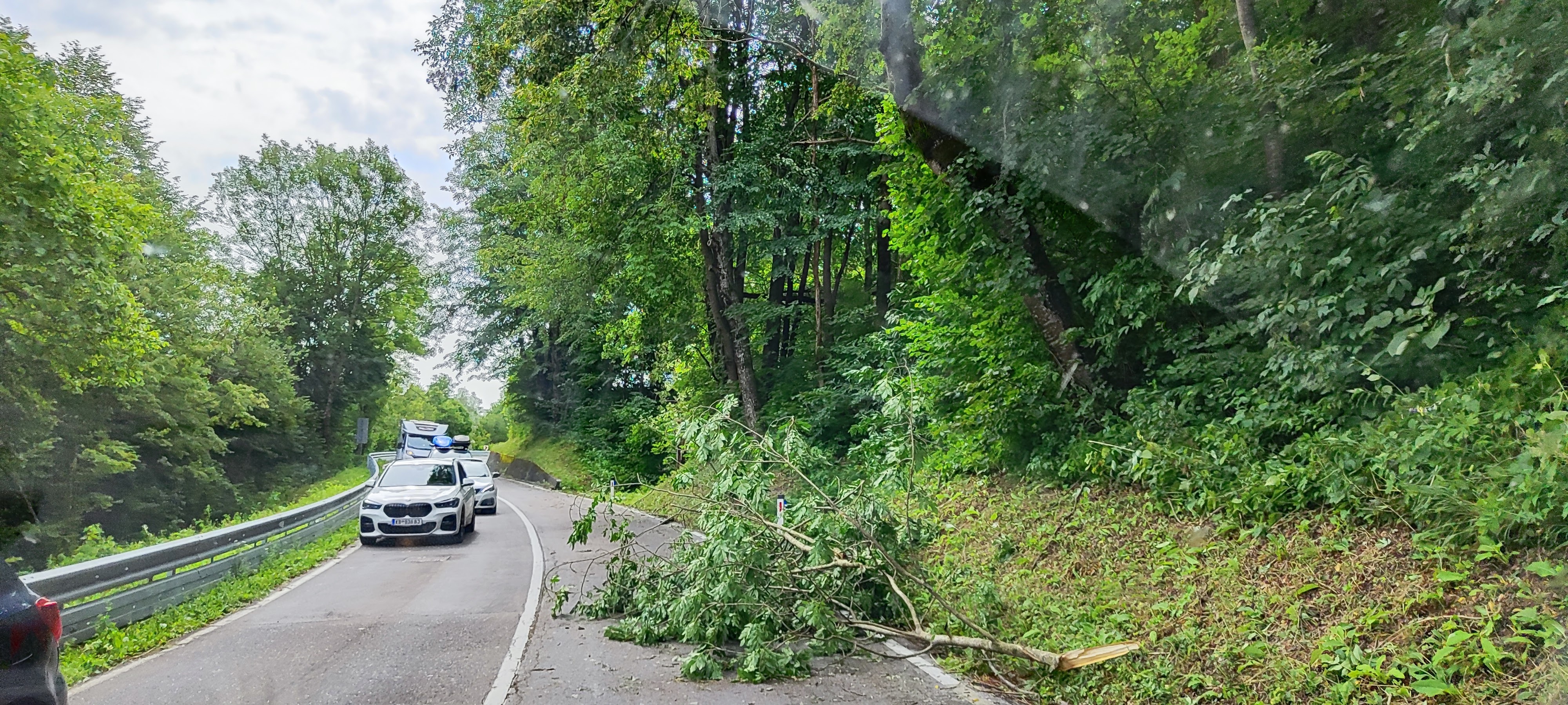 Sturm. Gewitter. Hagel! Nachts kracht und donnert es in den Bergen, das wir senkrecht im Bett sitzen. Unser Wohnmobil besteht in diesen Nächten jede ‘Dichtigkeitsprüfung’, eine bei Wohnmobilisten beliebte jährliche Prüfung. Die zweite Nacht ist schlimmer als die erste, entwurzelte Bäume, heruntergekommen Felsen, und gesperrte Straßen bezeugen das Chaos am nächsten Tag. Wir haben Glück im Wohnmobil und gedenken der Zelt-Camper, und der Auto-Dach Schläfer. Ein Camping Nachbar hatte Glück und ist nur knapp einem Baum entkommen. Nun reicht es uns, wir haben genug!